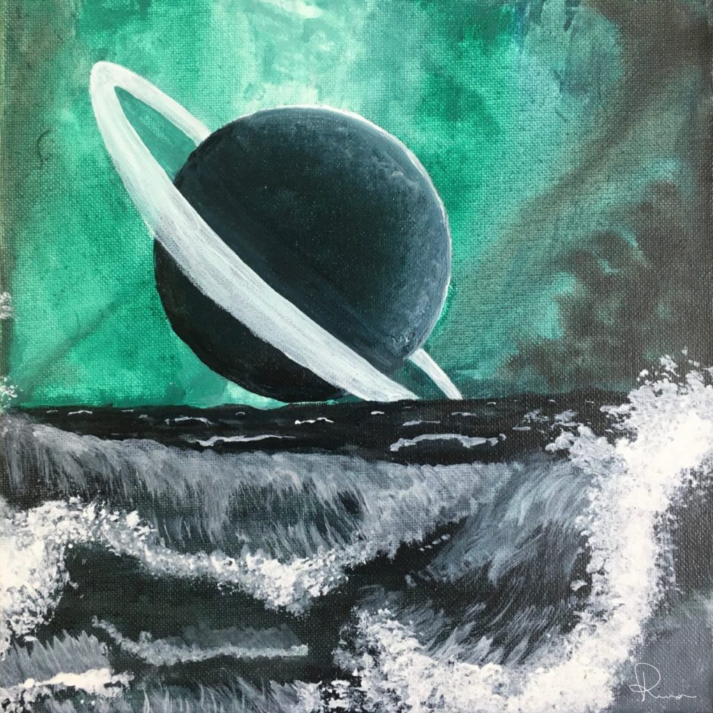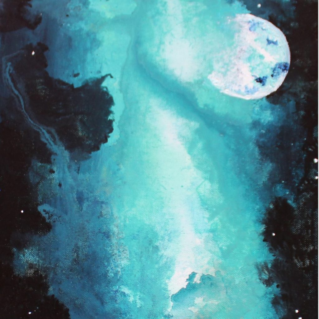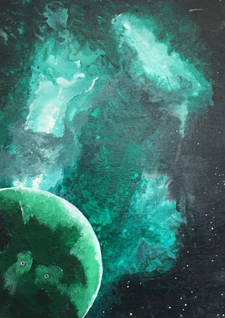 The piece is acrylic on canvas, though I water down the paint for the galaxy sections. It creates natural swirling textures that feel a bit like their own small universe, and no two paintings ever come out the same.