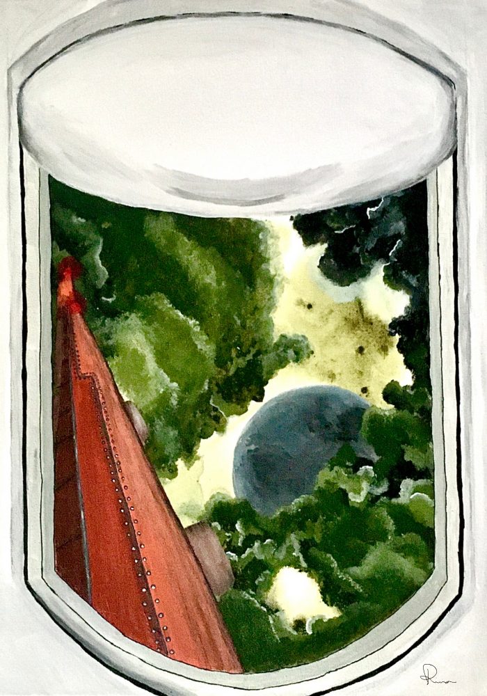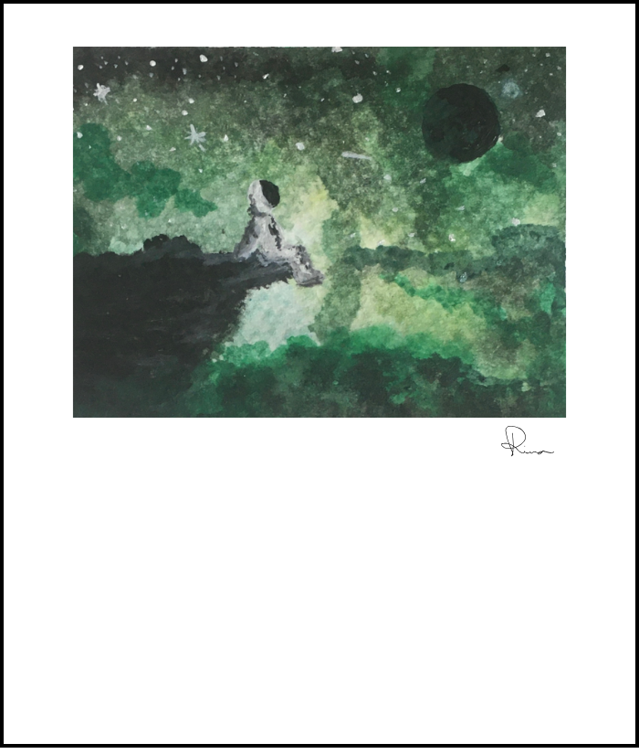 I made this with watercolor and acrylic as a kind of space “polaroid”, a quick snapshot of an astronaut on holiday, taking a minute to stare out into a nebula. Just a small, borrowed moment in a very big universe.
